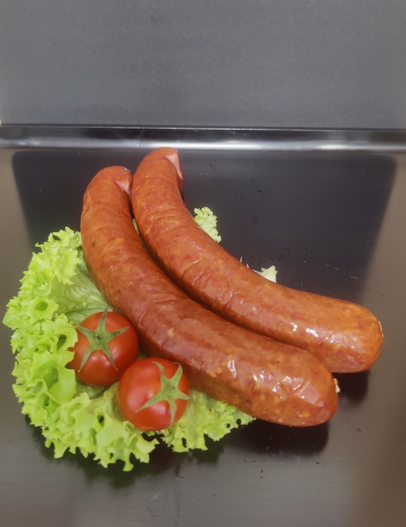 Zutaten: 50% Wildfleisch. Rindfleisch, Speck, Trinkwasser, Nitritpökelsalz (Kochsalz, Konservierungsmittel E250), Gewürze, Glucose, Dextrose, Stabilisator E450, Geschmacksverstärker E621, Antioxidationsmittel E300, Rauch.